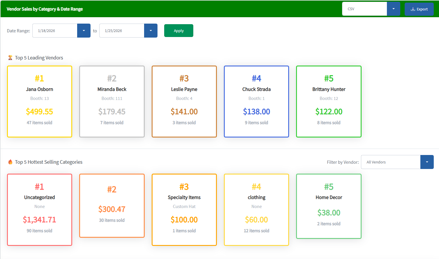 Top-performing vendors