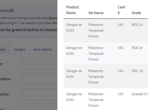 Powered by live market data (including PriceCharting), SyncroAI helps you: