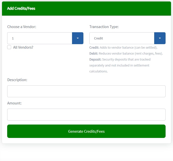 Rent and commissions aren’t tracked in isolation — they flow directly into vendor balances and settlements.